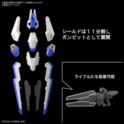 - Accessories: Hand parts × 1 formula, Beam saber × 2, Beam rifle × 1, Shield x 1, Effect parts for beam rifle × 1, Joint parts × 1 formula, Sticker × 1